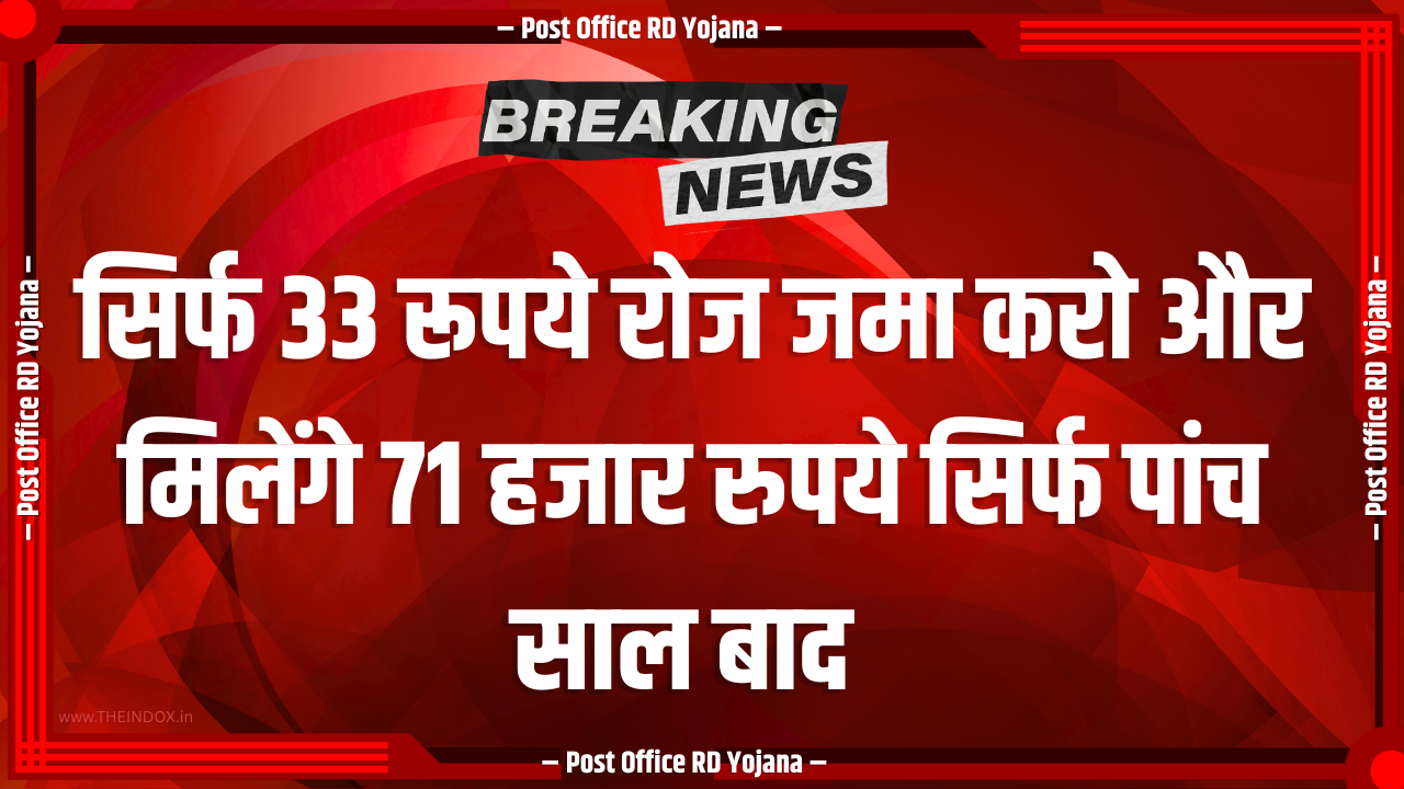 Post Office RD Yojana: क्या आप जानते हैं कि सिर्फ चाय नाश्ते जितनी रकम रोज़ाना बचाकर आप कुछ सालों में एक मजबूत फाइनेंशियल फंड बना सकते हैं? जी हां, ये कोई सपना नहीं बल्कि पोस्ट ऑफिस की Recurring Deposit (RD) योजना की हकीकत है हैरान रह जाएंगे आप ये जानकर कि ₹1000 महीने की मामूली बचत से बिना किसी जोखिम के आप ₹71,369 तक की रकम जुटा सकते हैं।