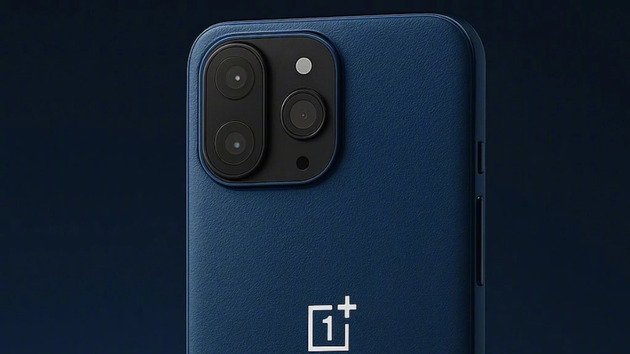 The leaked image shows the OnePlus 15 sporting a premium leather-finish back panel, a clear departure from its predecessors. The camera module design has also changed, replacing the large circular lenses with a compact, square-shaped triple-camera setup positioned at the top left.
